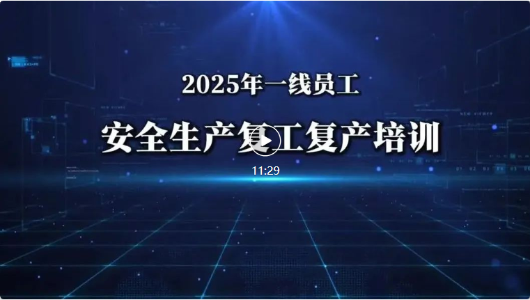 【视频】春节后一线员工安全生产、复工复产培训视频,立即组织观看!11分29秒