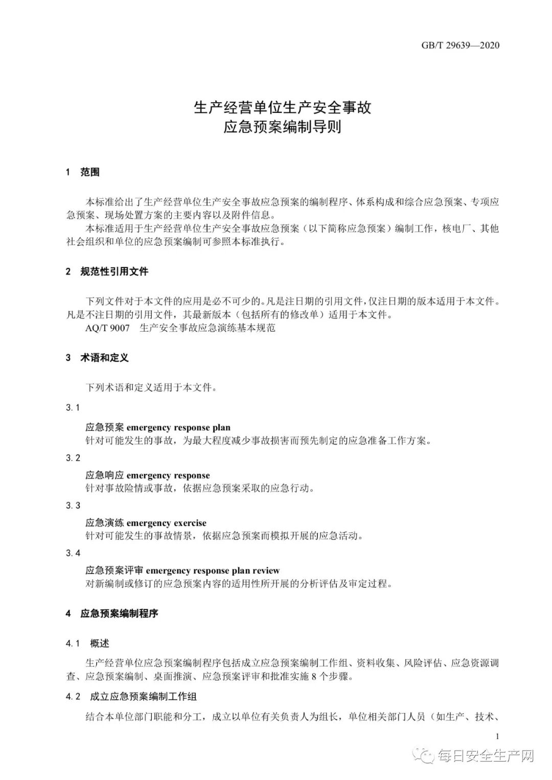 GB T 29639-2020生产经营单位生产安全事故应急预案编制导则