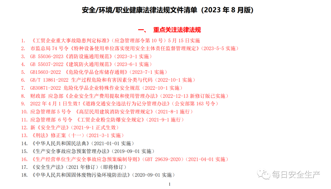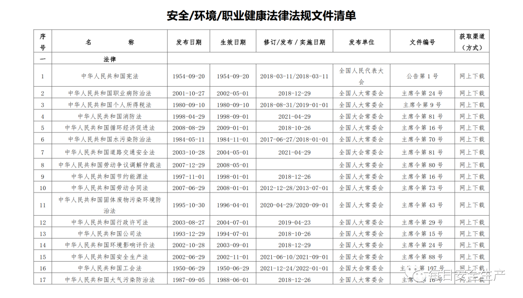 【文件】安全/环境/职业健康法律法规合规清单(2023版)